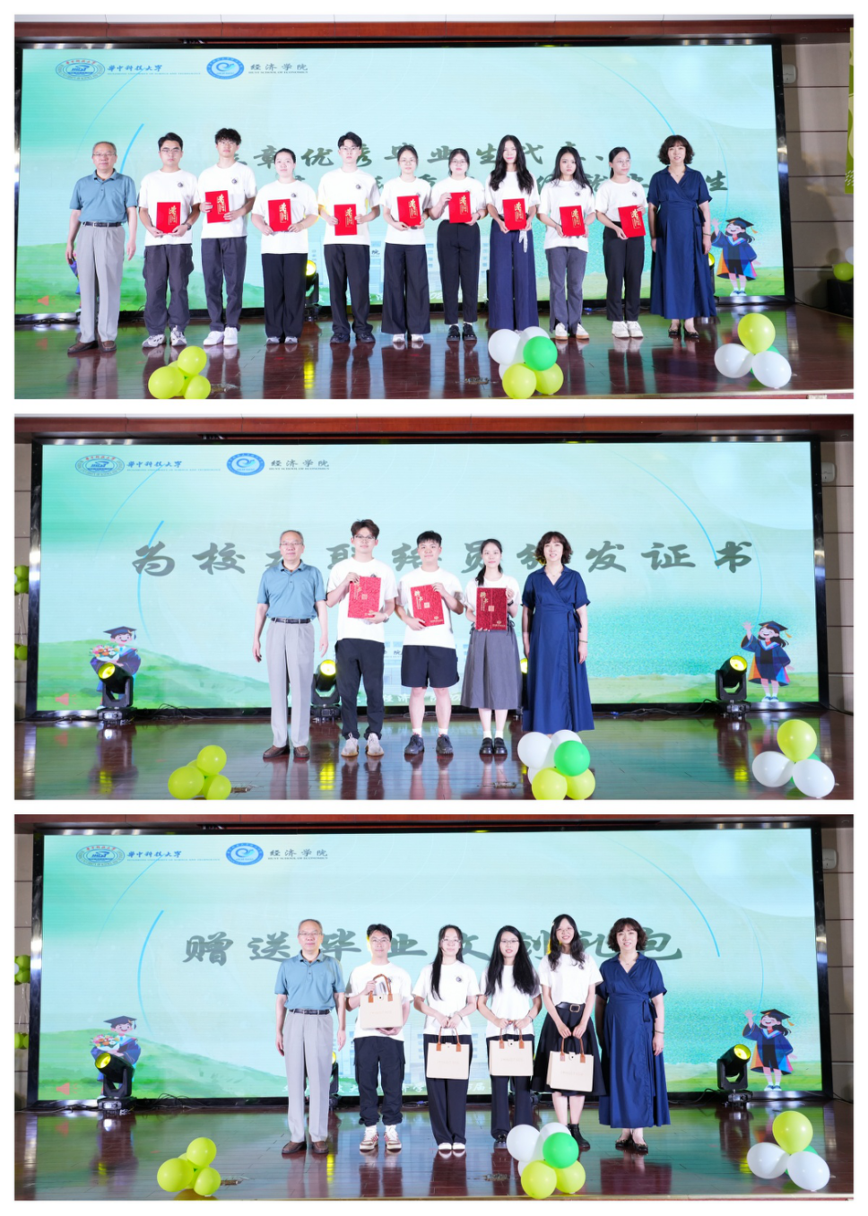 张建华院长与刘雅然书记共同为优秀毕业生、西部计划和赴基层及重点单位工作毕业生颁发证书;为校友联络员颁发聘书,建立毕业生与母校的长效联系机制;为毕业生代表颁发学院毕业纪念品。