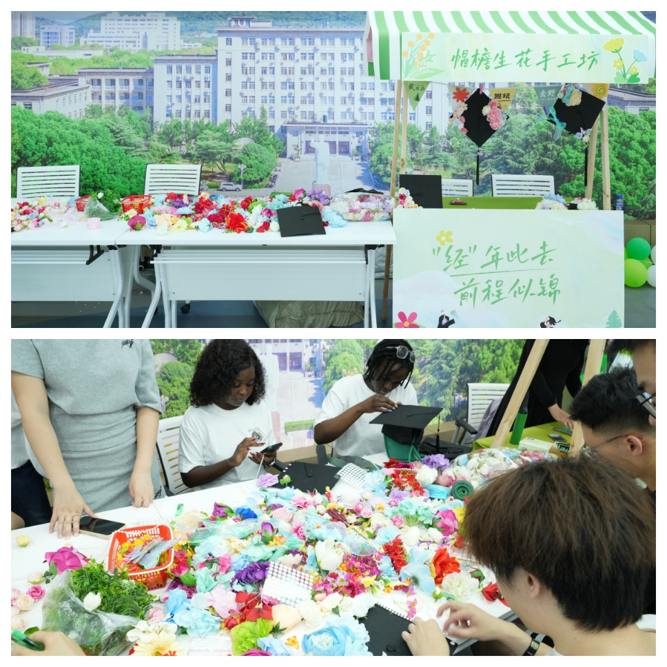帽檐生花手工坊在毕业帽上进行创意装饰,以此承载对未来的期许,启航新征程,收获了“筑梦之章”。