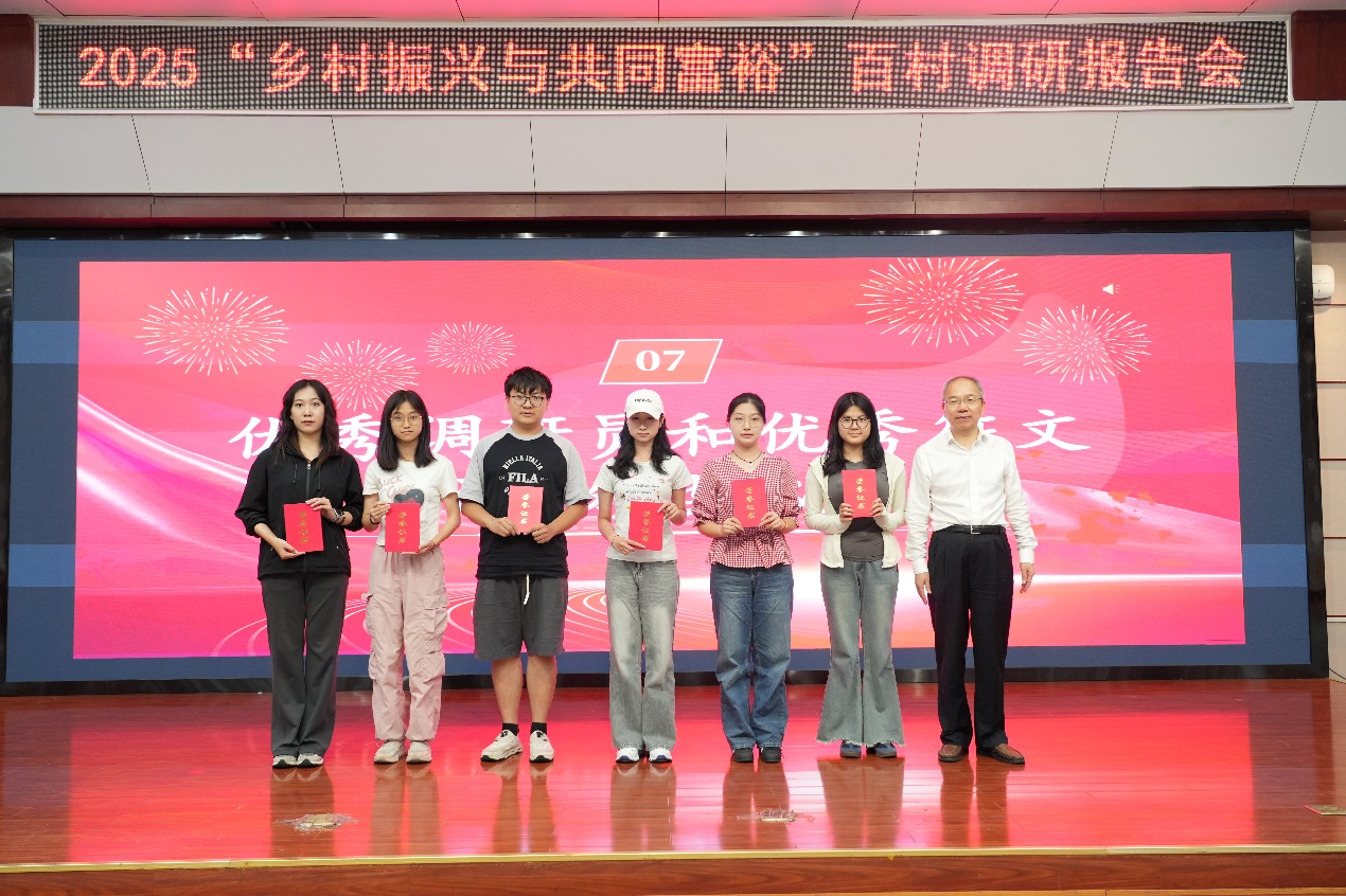 6月19日,2025年“乡村振兴与共同富裕”百村千户调查(以下简称“百村调查”)报告会在williamhill中文报告厅顺利举办。校团委书记罗迪,williamhill中文院长、张培刚发展研究院院长张建华,williamhill中文党委书记刘雅然,副院长钱雪松,教师杨金阳,全体辅导员以及百村调查优秀调研员等参加报告会。活动由学院研工组组长彭鹤翔主持。