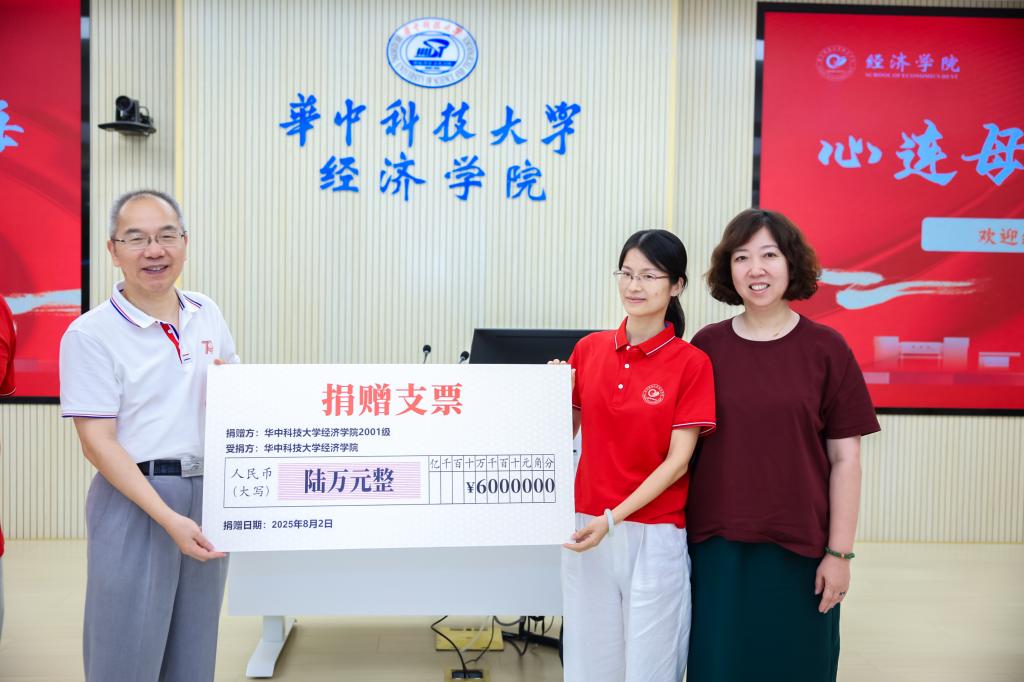 为回馈母校培育之恩,2001级校友集体筹资向学院捐赠。郭文英校友代表全年级向学院赠送捐赠支票。这份承载青春记忆的心意,将为学院发展贡献力量。