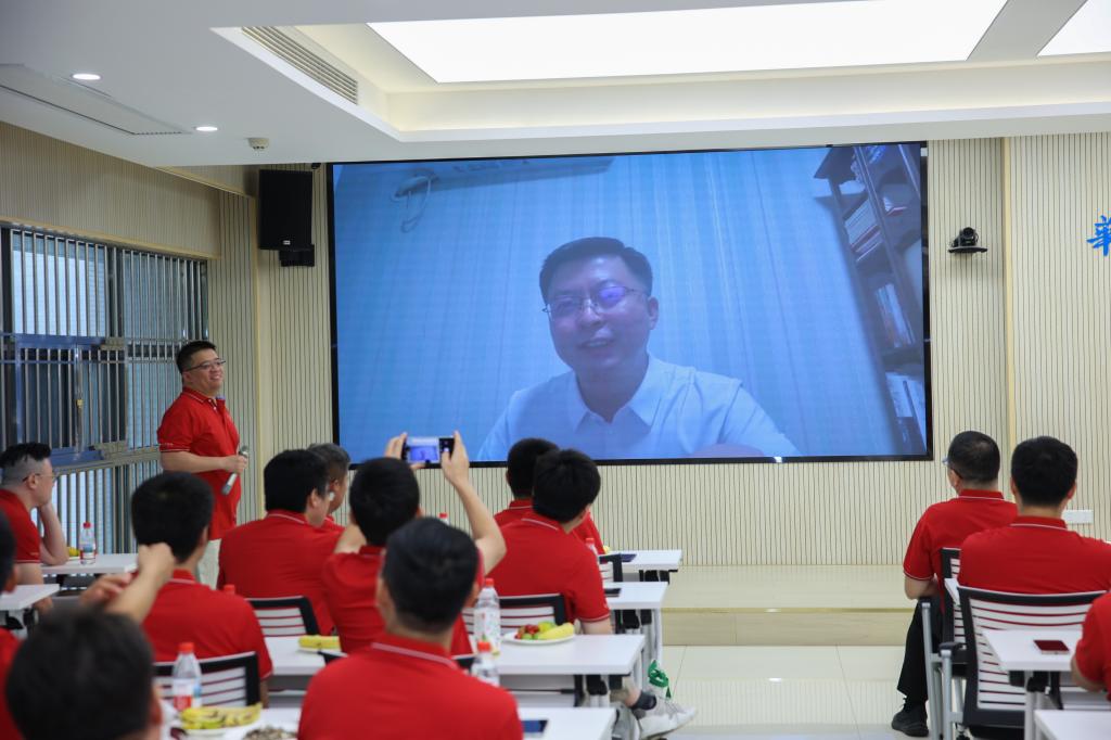 原2001级国贸011班班主任杨东通过视频送上亲切问候,他回忆了与同学们共同学习成长的时光,期盼常相聚、多联系。
