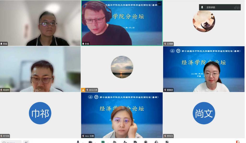 (通讯员:王彬 毛文敏)7月11日,威廉官网中国第十四届“国际青年学者东湖论坛”williamhill中文分论坛(暑期)以线上会议的形式顺利举办。本次论坛聚焦经济学科前沿动态与实践应用,汇聚了领域内的骨干力量,经济系主任陈斌等多位老师出席活动,共同开启一场聚焦深度研讨的学术交流。