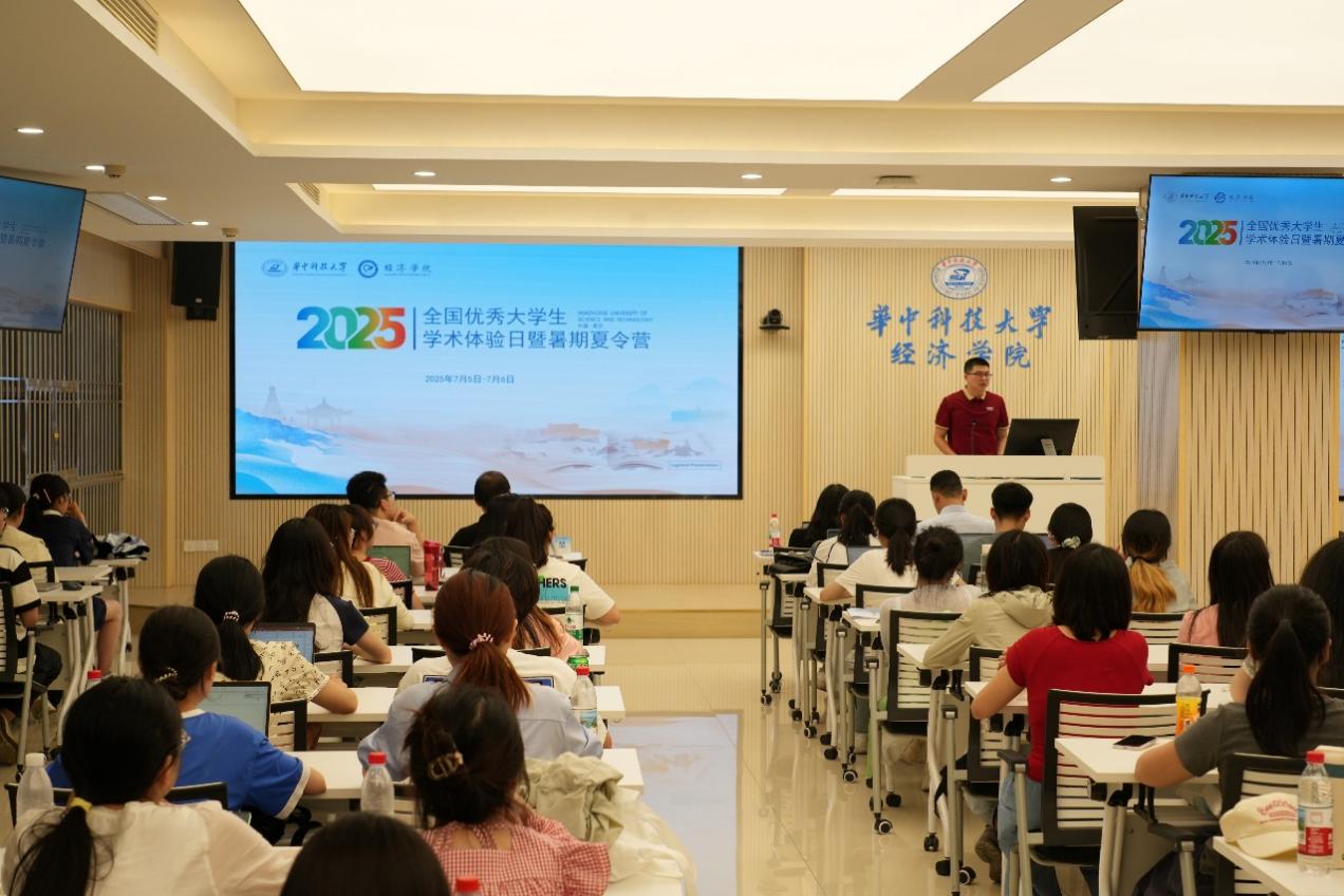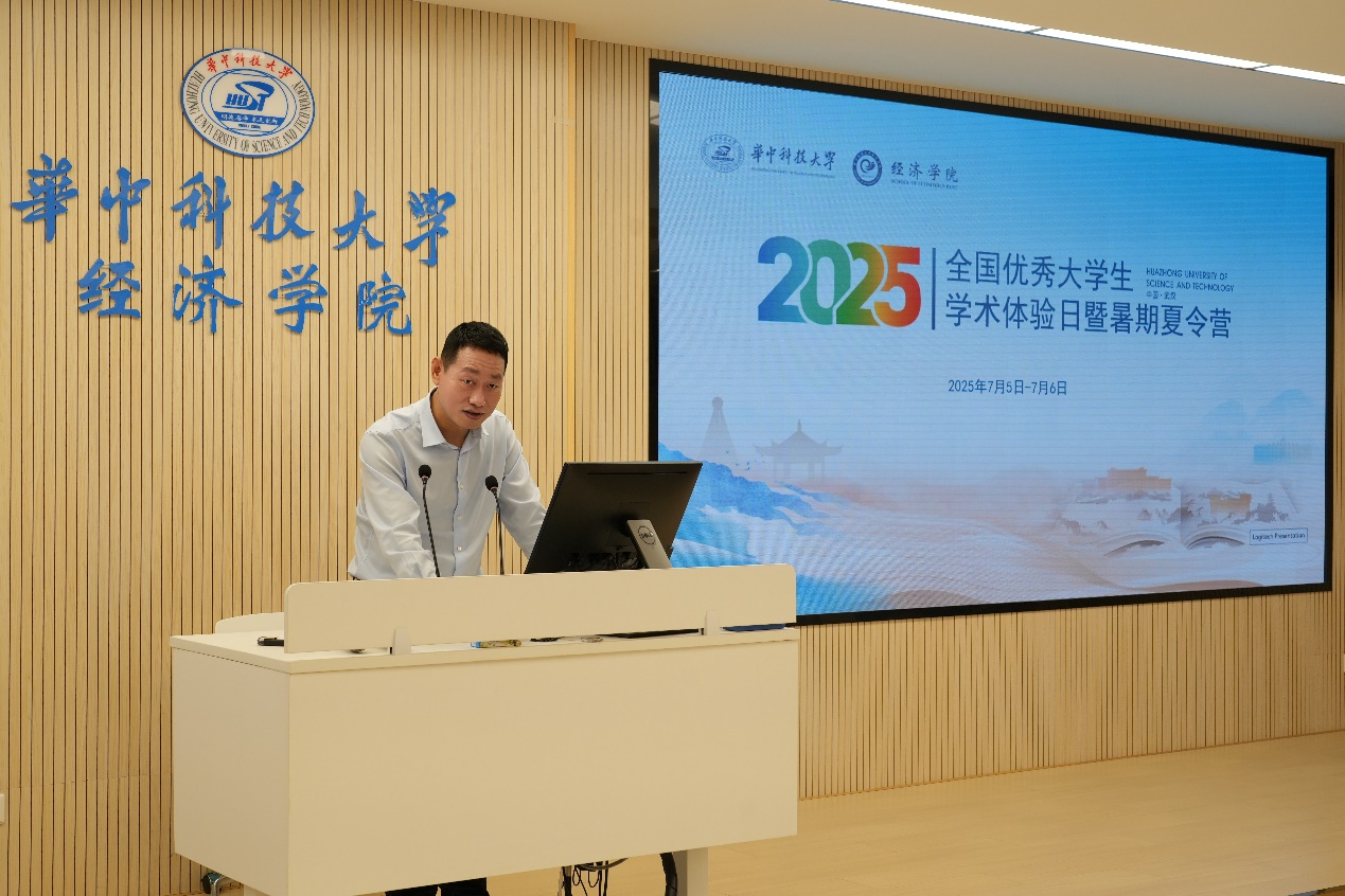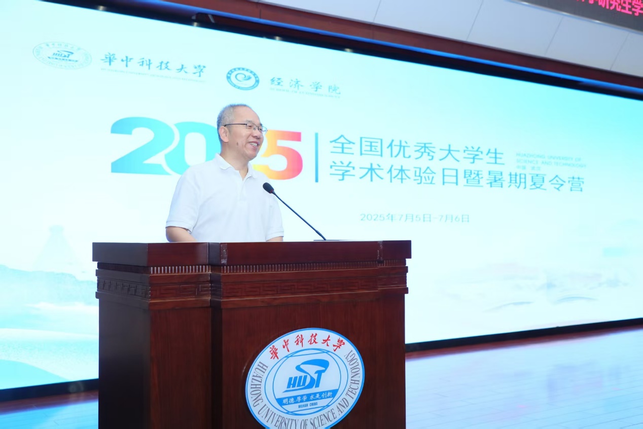 学院副院长孔东民教授在开营仪式致欢迎辞,代表学院对来自全国各地高校的近百名营员表示热烈欢迎。他简要回顾了学院自张培刚、林少宫等先贤奠基以来的发展历程,以及在学术研究、人才培养与社会服务等方面取得的丰硕成果。他特别指出,本次夏令营在形式与内容上全面升级为“学术体验日暨暑期夏令营”,通过前沿讲座、专题研讨等多样化学术活动,为参营学子打造高水平的交流平台。他鼓励营员们以专注之心、思辨之力与家国情怀投入学习与交流,努力成长为兼具学术素养与社会责任的复合型人才,并期待大家在活动中收获知识、启发思考、结识志同道合的伙伴。