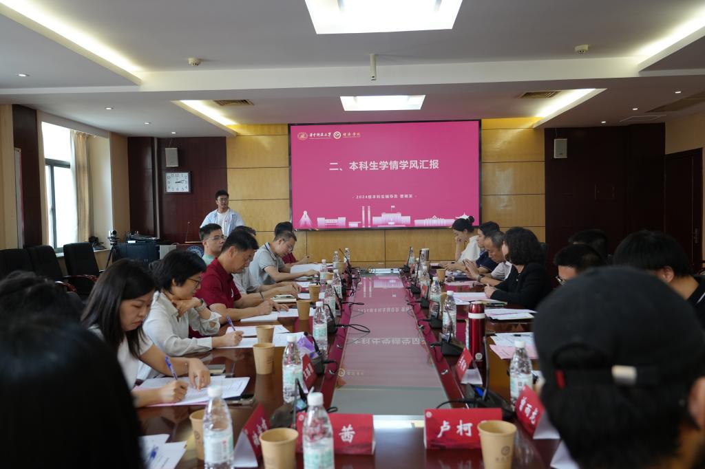 随后,2024级本科生辅导员曾雨龙汇报了学院本科生学情学风情况及2024级学业发展现状。他通过详实的数据,分析了学期成绩整体表现、学生特点、学风状况和反馈问题,重点介绍了2024级本科生在专业认同及学业支持需求方面的具体情况,并提出了下一步学风建设的工作规划。