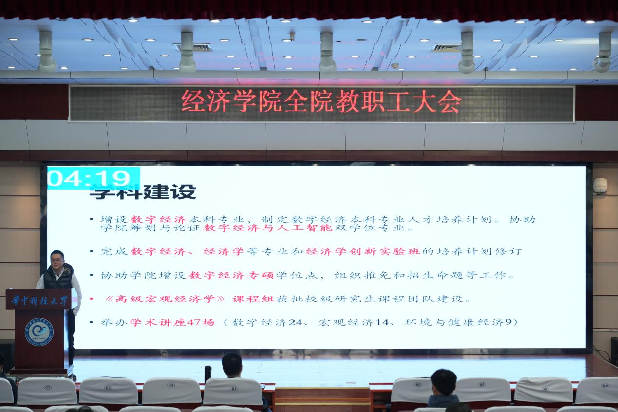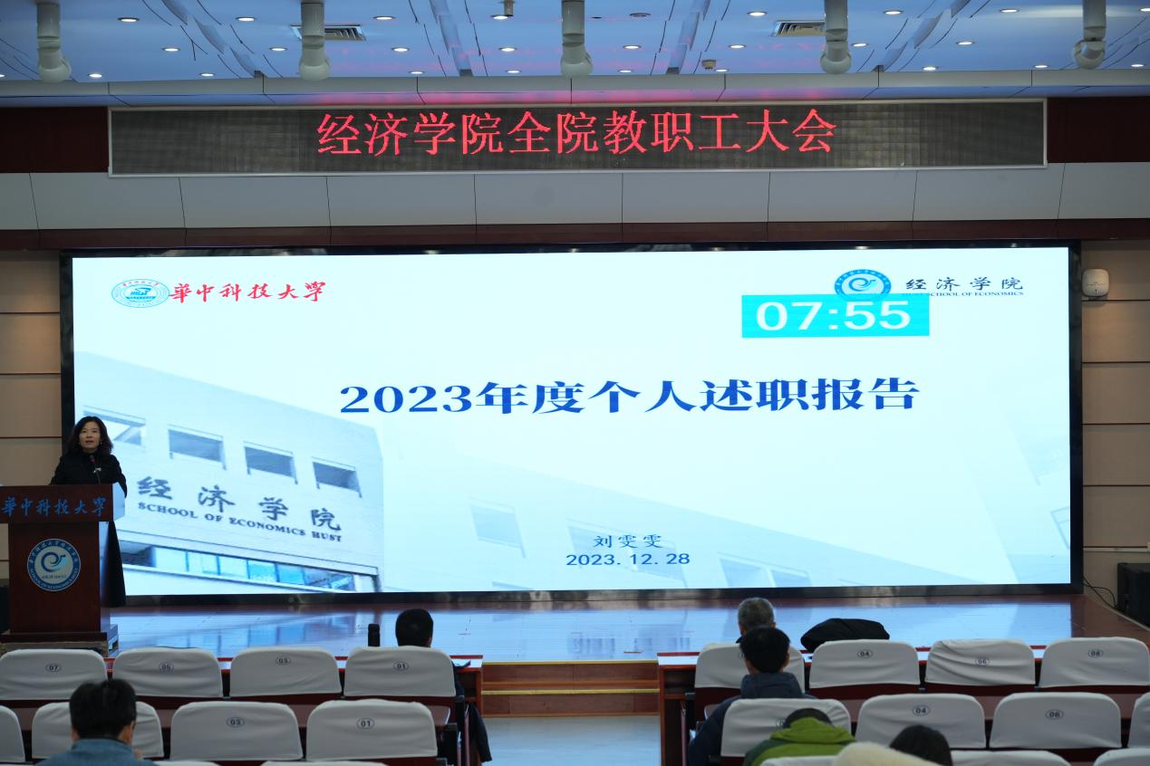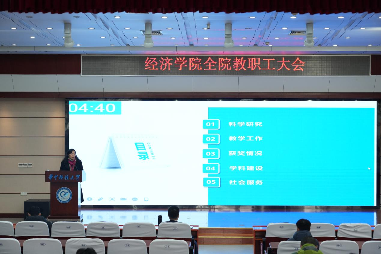 副院长钱雪松,副院长孔东民,党委副书记、副院长姚遂,党委副书记刘雯雯,工会主席钟熙维分别报告了过去一年分管工作的成果,并提出新一年的工作计划。