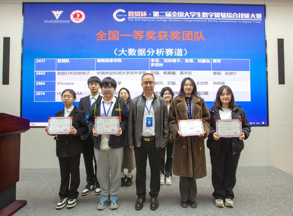 由学院2023级国商专硕黄昕晴、刘锐可、张紫萱带队的三支队伍参与“大数据分析”赛道,2020级本科国际经济与贸易专业于苛苛带队的一支队伍参与“创新创业计划书”赛道。四支队伍在初赛中脱颖而出,顺利进入决赛。该竞赛共分为三轮——初赛、决赛以及现场总决赛。各个赛道按成绩取前60名的团队入围全国现场总决赛,其中学院三支队伍以优异的表现顺利进入现场总决赛。经过严格公开的路演与答辩环节,“大数据分析”与“创新创业计划书”两支赛道各决出了十六支全国一等奖团队,学院进入总决赛的三支队伍全部荣获一等奖。