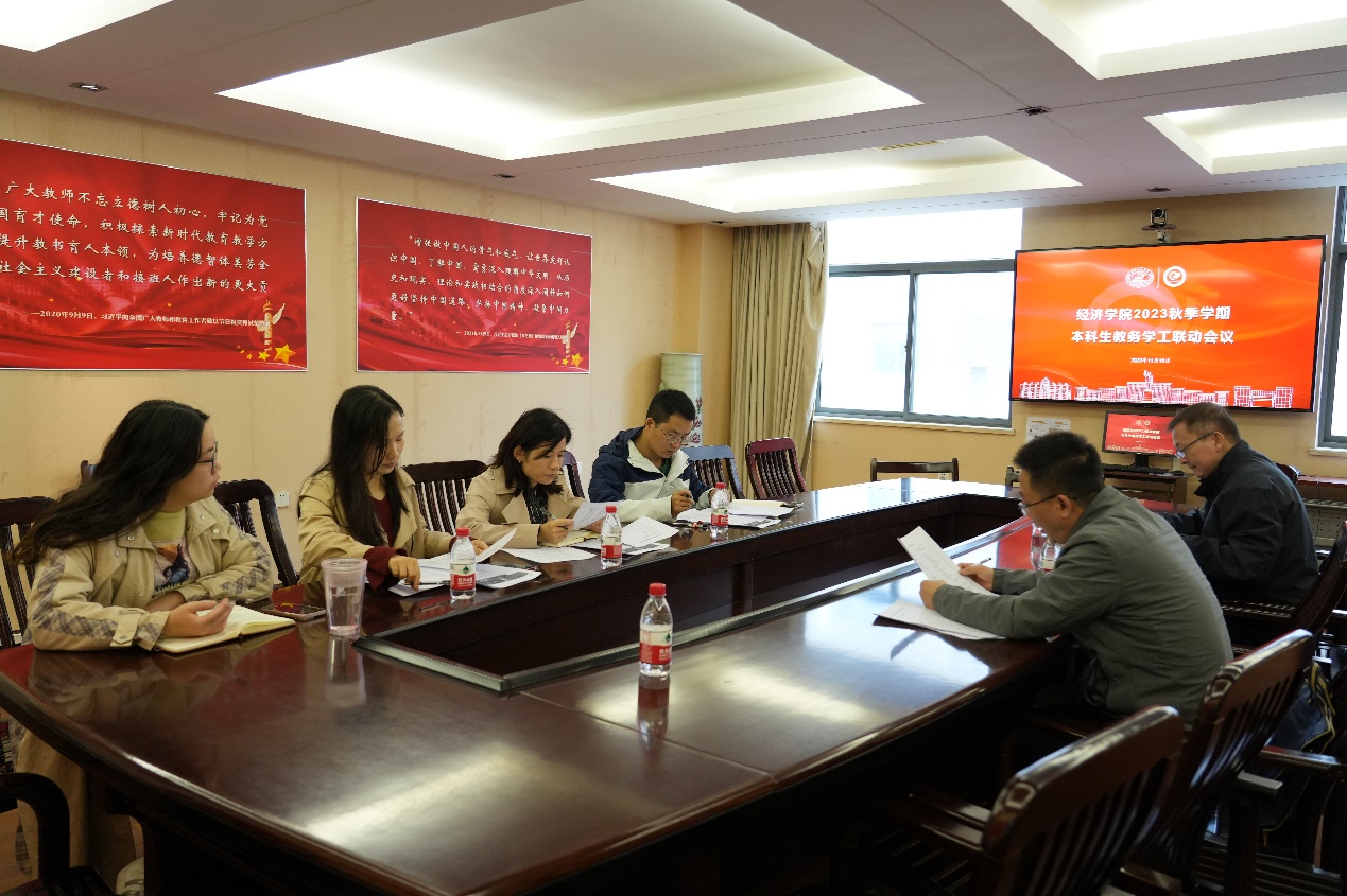 本网讯(通讯员:马文丽)为进一步优化学院本科生人才培养的课程设置,促进本科生班级的优良学风建设,2023年秋季学期本科生教务学工联动会议在学院310会议室顺利展开。学院副院长钱雪松、党委副书记刘雯雯、本科教务科科长李军,学工组辅导员李曼菁、李鸿鹏、马文丽参与会议。