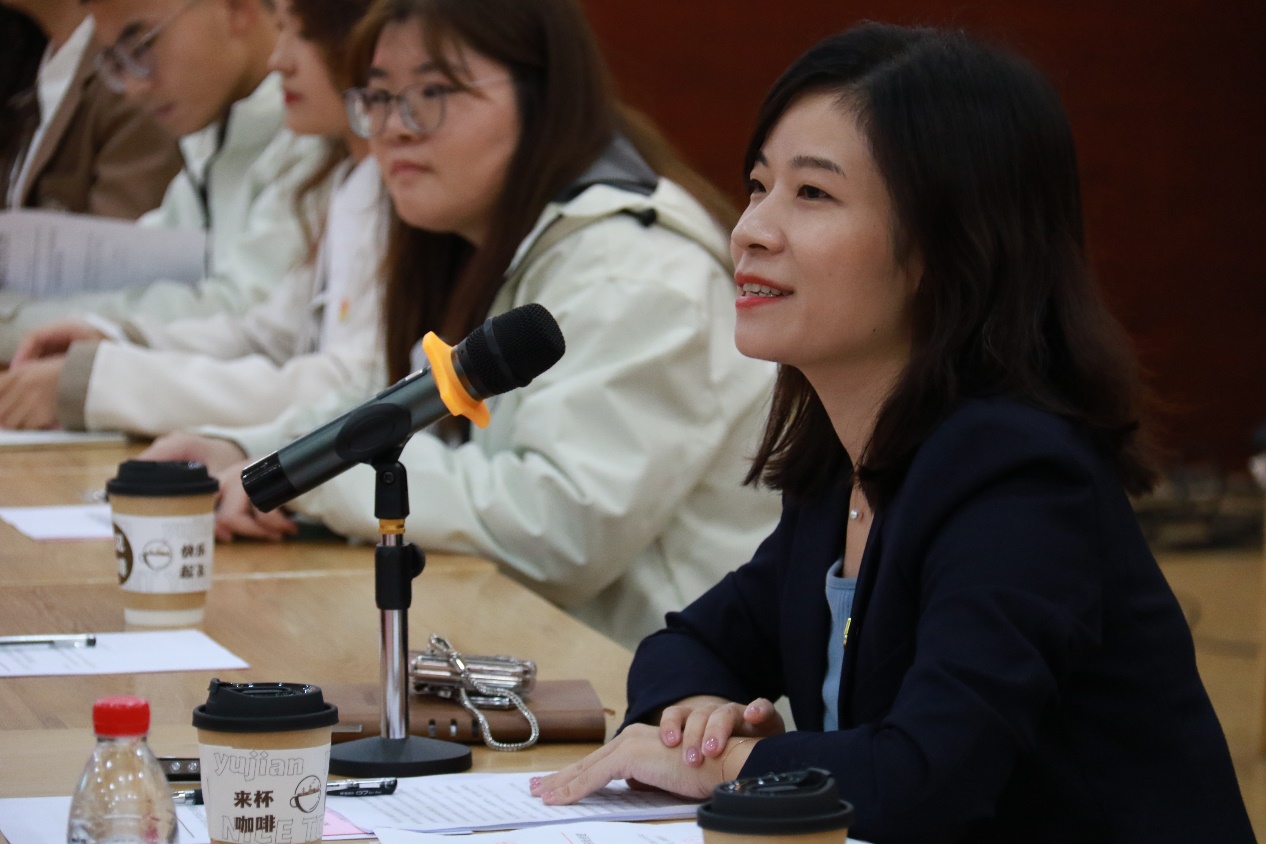 互动交流环节中,与会人员就荣誉班级建设开展主题研讨。艺术学院辅导员赵琳、机械科学与工程学院龚凌轩、法学院辅导员李岩、船舶与海洋工程学院辅导员杨冰、人工智能与自动化学院兼职辅导员郑涛等结合具体实践中荣誉班级建设和“三进三同”的工作,分享工作经验,讨论建设机制。