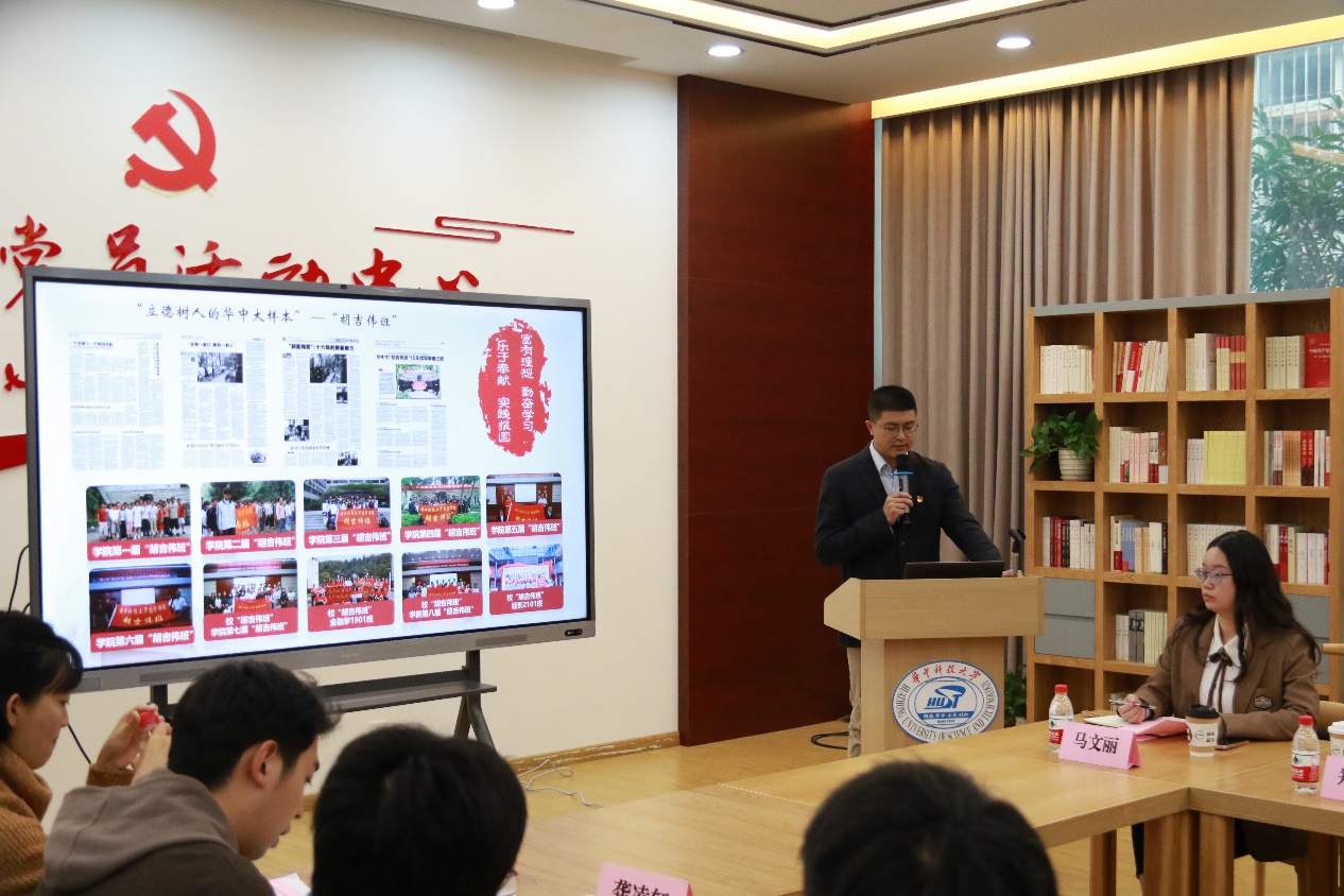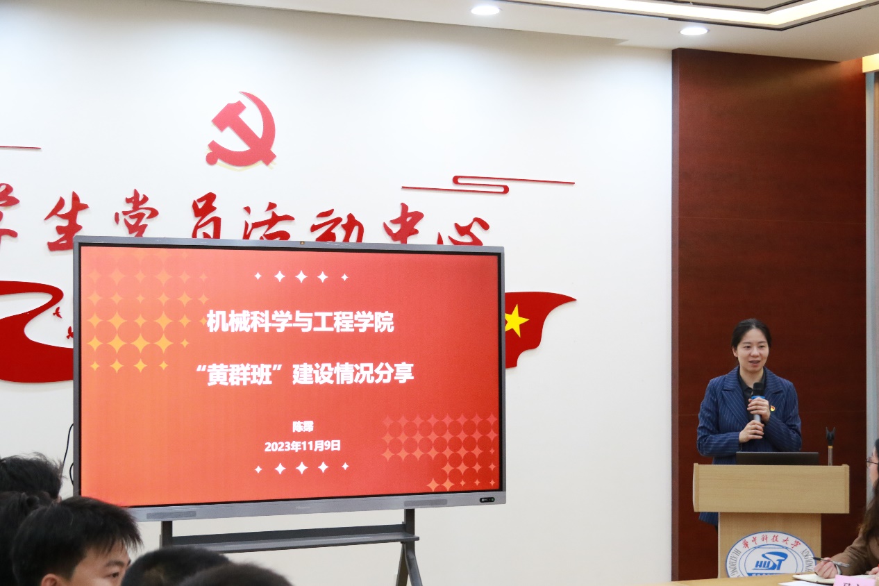 机械科学与工程学院辅导员陈霈从工作思路、工作成效和启示思考三方面展介绍学院“黄群班”建设经验,她强调导学团队、教师班主任、辅导员、科研竞赛对班级建设的重要作用,突出了“黄群班”的科技报国、学风建设的建设重点,提出品牌育人、朋辈引领和创新形式等方面荣誉班级建设的思考。