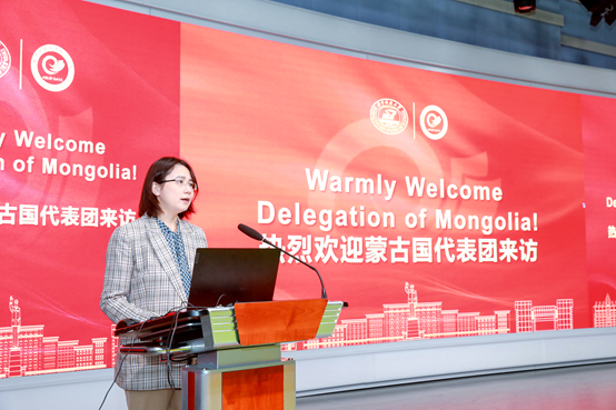 陈洁代表学校对MANDKHAI一行的到来致以热烈的欢迎,她介绍了学校的发展概况与国际合作交流现状。她指出,在“一带一路”倡议背景下,学校积极推进与蒙古国的交流与合作,先后培养387名不同领域人才。布勒根图雅部长作为杰出校友,多次访问母校,为促进两国深化战略合作与友谊做出突出贡献。她表示,此次研讨是一个很好的契机,期望双方能够加深学术交流与学生培养等领域的交流合作,成为中蒙两国友谊的典范。