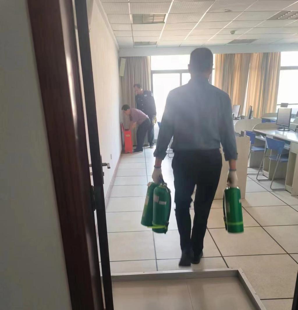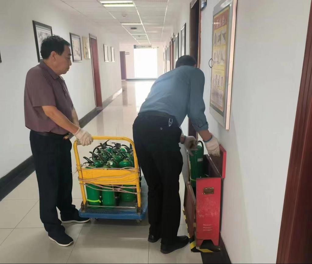 灭火器作为消防安全的重要装备之一,对于预防和控制火灾具有不可替代的作用。然而,随着时间的推移,灭火器内的粉剂会逐渐老化、失效,因此定期更换粉剂是确保其有效性的必要措施。williamhill中文一直以来高度重视消防安全工作,为进一步加强消防设施的有效性,10月11日下午我院将即将到期的灭火器进行集中清理,进行检修并更换最新的粉剂,确保灭火器在关键时刻能够发挥出最大的作用,保障大楼内师生员工的生命安全和财产安全。此次共计更换灭火器共计60个,其中:干粉型灭火器8个、水基型灭火器52个。