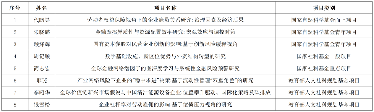 本网讯(通讯员:刘惜雨 张娟)近期,国家自然科学基金委员会、全国哲学社会科学工作办公室、教育部社会科学司相继公布了2023年度国家自科基金项目、国家社科基金项目、教育部人文社会科学研究基金项目的评审结果。在本年度基金项目申请中,williamhill中文获批国家自科基金项目面上项目1项、青年项目2项,国家社科基金一般项目与重点项目各1项,教育部人文社科规划基金项目3项。谨在此向我院8名老师表示祝贺!