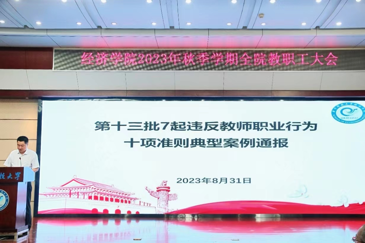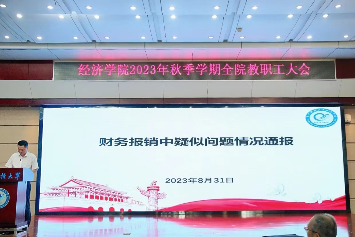 最后,戴则健分别进行了教职工违纪行为警示通报、财务报销中疑似问题情况通报。这些通报环节旨在提醒全体教职工要严守纪律,坚守道德底线,为维护学院的良好形象和促进发展努力。