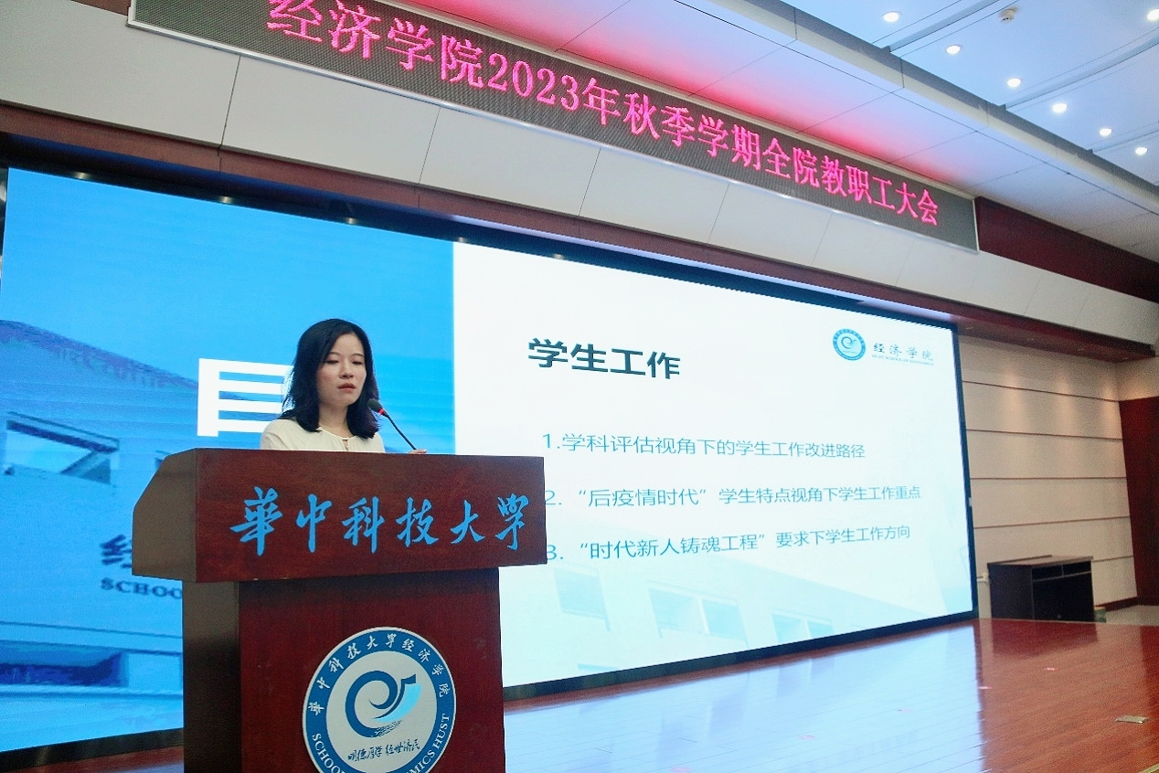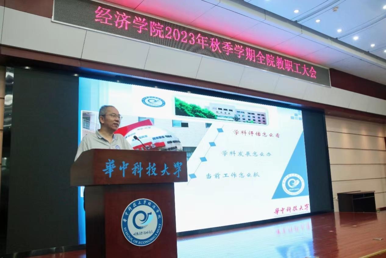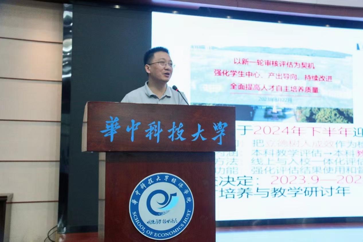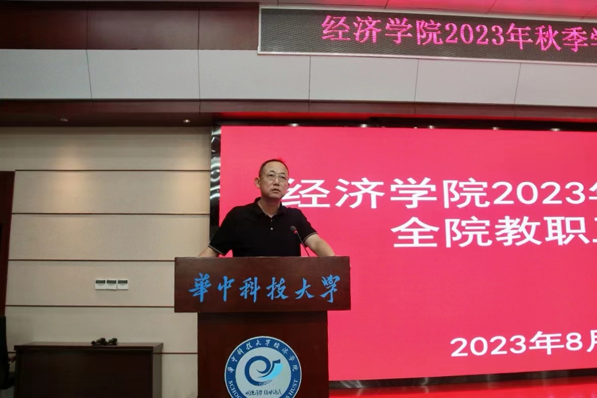 副院长钱雪松强调了新学期本科教学工作的重点,包括深化课程思政建设、推进一流专业建设、加快数字经济专业建设等方面的任务。