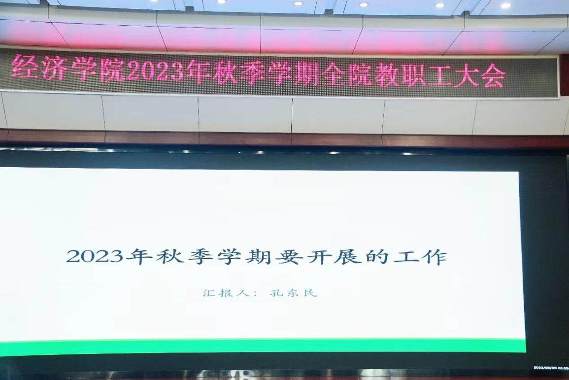 本网讯(通讯员:马文丽 刘雯雯)8月31日下午,学院在学术报告厅举行了2023年秋季学期全院教职工大会。会议由学院党委书记戴则健主持,全院教职员工齐聚一堂,共同研讨学院新学期的发展方向和工作计划。