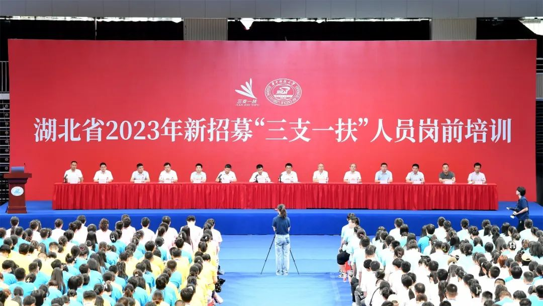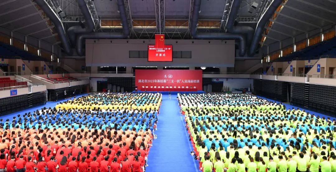7月21日-25日,湖北省2023年度新招募“三支一扶”高校毕业生在威廉官网中国进行为期五天的岗前培训。7月21日,开班仪式在威廉官网中国光谷体育馆举行,威廉官网中国、湖北省“三支一扶”工作领导小组成员单位有关负责同志出席开班仪式,近2000名学员参加开班式。