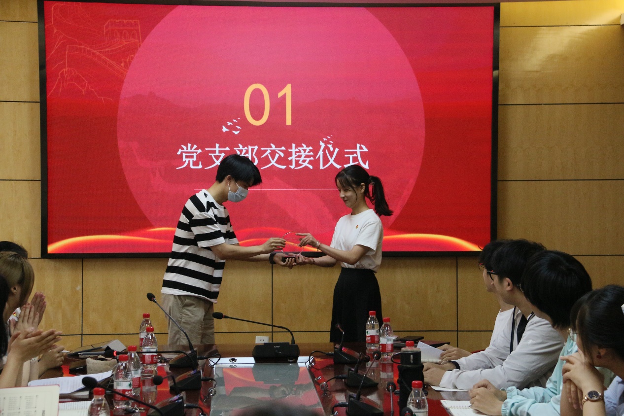 主题党日活动由胡吉伟党支部书记王柯雅主持。会议伊始,胡吉伟党支部开展旗帜交接仪式,由2023届毕业生党员代表危昂兼向胡吉伟党支部书记王柯雅递交代表胡吉伟党支部旗帜的铭牌。随后,新任胡吉伟党支部书记王柯雅以“文化强国”为主题进行领学,并由胡吉伟党支部代表余传龙讲授微党课。余传龙从文化的突出特性、“两个结台〞的必由之路、坚定文化自信和建设文化强国三个方面讲述了传承中华传统文化的必要性,并提出当代党员继承和发扬中华优秀文化的有效举措。