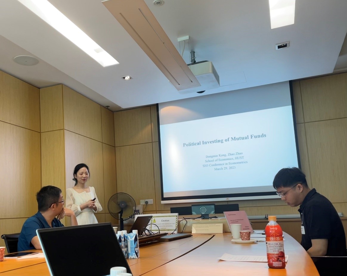 赵钊汇报的主题为“Political Investing of Mutual Funds”。该论文主要研究了共同基金的政治投资是否以及影响基金的表现。文章为共同基金政治关联密度敞口与未来表现之间的正相关关系提供了稳健的证据。根据基金的政治关联密度敞口大小将基金排序,发现敞口最大的前五分之一的基金与敞口最小的后五分之一的基金之间的总收益差达到年化4.38%。这一收益差在有较高特征选择技能的基金中显著更大。论文发现基金的政治关联密度敞口与基金经理的选股技能密切相关,而与政治投资风险溢价、政治投资择时能力和腐败之间关系较弱。