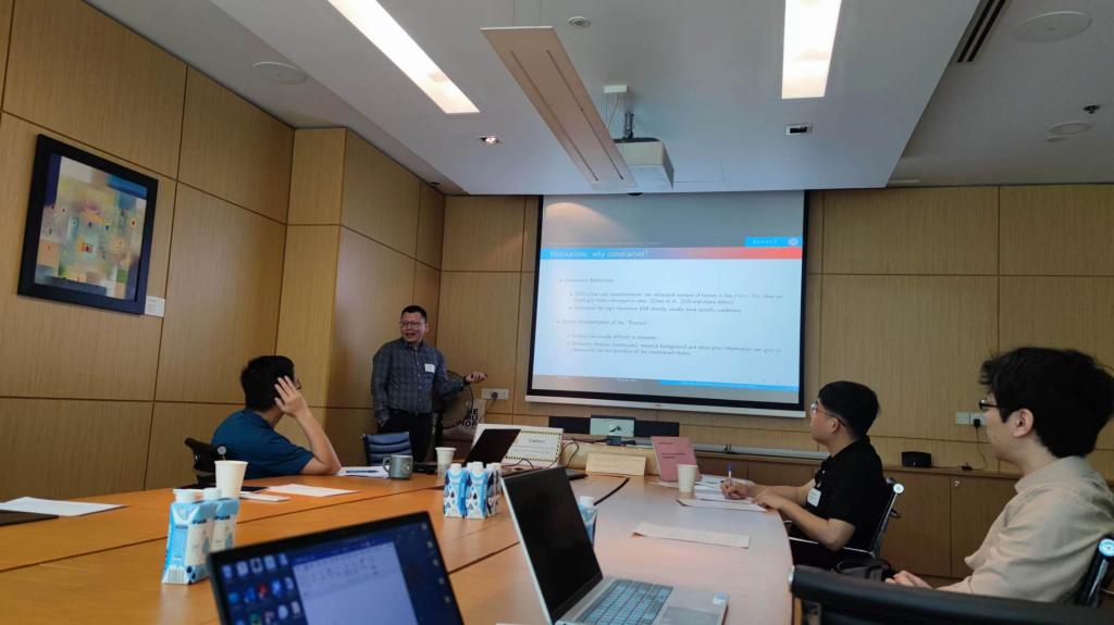 会议由新加坡管大学williamhill中文于俊教授主持。会议的第一位汇报人是彭斌,他的演讲题目为《Estimation and Inference of Constrained FAVAR Models》,该论文是与硕士研究生彭译萱共同合作。这篇文章从Bernanke提出的FAVAR模型出发,根据宏观经济中的先验信息作为切入点提出了基于约束矩阵的FAVAR模型,提出了带约束的FAVAR模型并建立了相关的估计和统计理论。在实际应用中,先验知识或实质理论可能只提供约束矩阵的部分说明,部分约束近似因子模型更为合适,可以考虑全约束因子模型和部分约束因子模型。该论文与已有文献进行比较,创新点在于通过构造旋转矩阵简化约束FAVAR模型的辨识、估计和推导理论,通过SDV分解结构构造了四个渐进等价旋转矩阵,简化了渐进理论证明,有助于理解近似因子模型在高维时间序列中的作用。随后计算约束FAVAR模型的渐进性质和统计推断,并重新计算在约束条件下脉冲响应函数,最后采用蒙特卡洛模拟验证了结果。