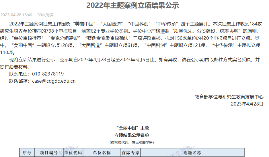 教育部学位与研究生教育发展中心2022年主题案例立项结果公示