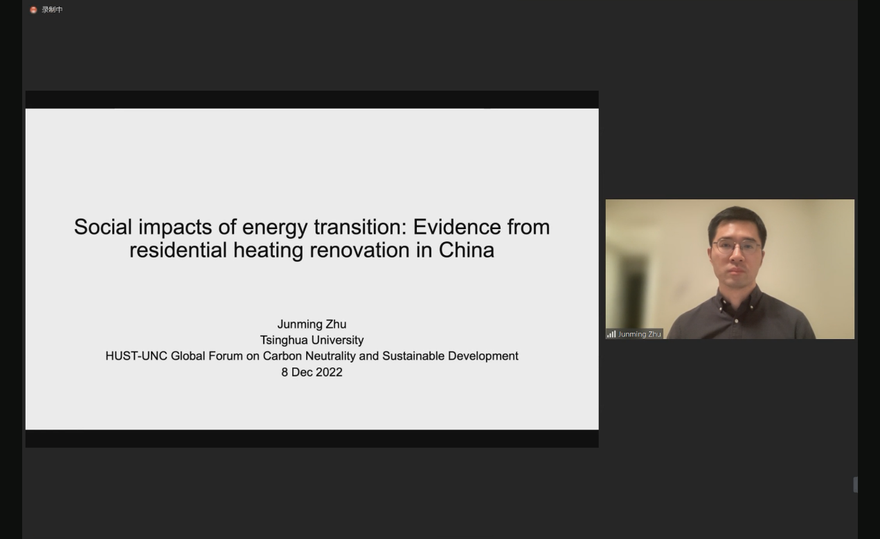 清华大学公共管理学院副教授朱俊明的演讲题目为《能源转型的社会影响:来自中国清洁供暖改造的证据》。朱俊明提到,住宅供暖是能源转型的一个重要部分,中国供暖主要有集中、以煤为主、清洁能源增长缓慢等特点。利用中国北方农村清洁供暖改造政策,研究发现供暖改造对公众社会地位认知有实质性的提升作用,这在一系列实证识别中都是稳健的,但这一效应会随时间下降。从长期来看,清洁供暖改造能够提高公众收入水平和健康状况,并减轻家务劳动负担。这一结果表明,清洁供暖可以带来可持续和包容性的转型,也需要配套措施以最大限度地提高其社会收益。