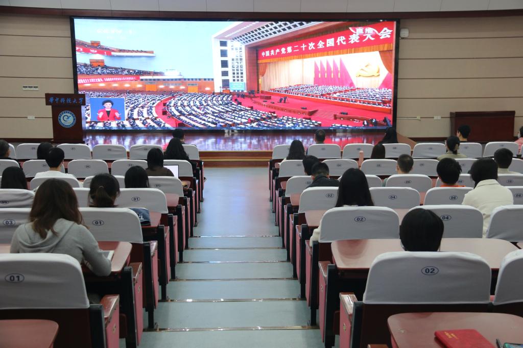 williamhill中文院领导、各系系主任、各党支部支委成员、学院行政全体人员,师生党员代表等在williamhill中文报告厅集中收看大会直播。