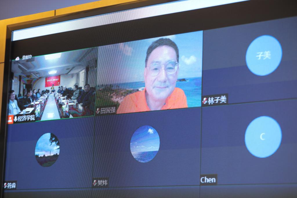 随后,张建华院长向林少宫先生夫人吴驯叔老师赠送《林少宫文集》。林少宫先生长子林子美以视频连线的形式,表达对学校和学院的感谢。麦克法登-林少宫经济学奖学基金秘书长张学功随后发言。