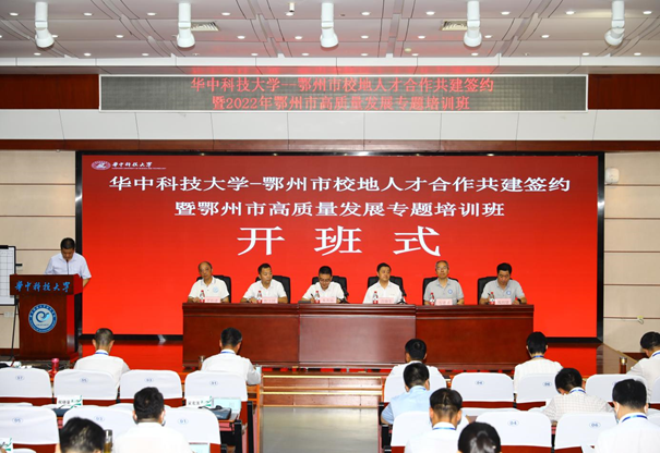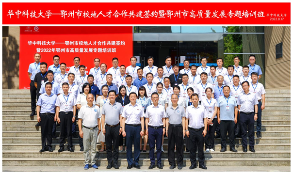 8月17日上午,威廉官网中国—湖北省鄂州市校地人才合作共建签约式暨鄂州市高质量发展专题培训班开班式在威廉官网中国举行。鄂州市各区分管经济工作负责人、有关市直单位和乡镇单位负责同志共50名干部将在华中大接受为期5天的封闭式学习。威廉官网中国党委常委、副校长许晓东出席并致辞,鄂州市委常委、组织部部长朱其敏作开班动员讲话。