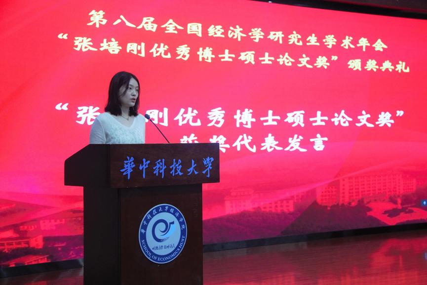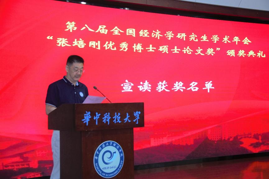 宋德勇教授宣读本届“张培刚优秀博士硕士论文奖”获奖名单。张凯霞、秦妮、邹建文、李阳琳、刘丽华获得“张培刚优秀博士论文奖”,陈琳琳、朱文博、莫琼辉获得“张培刚优秀硕士论文奖”。