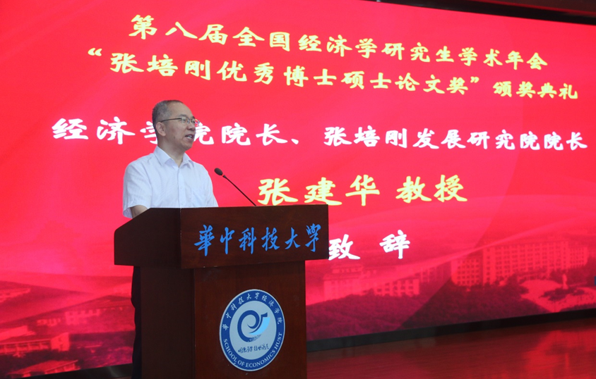 张建华对出席本次年会的嘉宾和获奖者表示欢迎和祝贺。他首先回顾了williamhill中文的学科发展历程和在学科建设上取得的成绩。他指出,在建设一流williamhill中文和服务国家社会经济发展道路上,研究生是不可或缺的中坚力量,为促进青年学子之间的学术交流,进一步发挥研究生智力资源优势,更好服务于国家战略,williamhill中文以“全国经济学研究生年会年”和“张培刚优秀博士硕士论文奖”为平台,引导研究生聚焦中国问题,夯实理论基础,探索实践道路,把经济学论文写在祖国大地上。最后他表达了对青年学者的期待,希望年轻一辈能在老一辈思想的感召下,在总书记指明的方向上,努力奋斗,尽快成长,为中国自主经济学体系构建贡献力量,也为中国经济腾飞,中国现代化的实现尽早到来贡献力量。