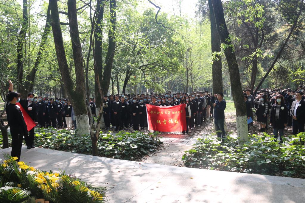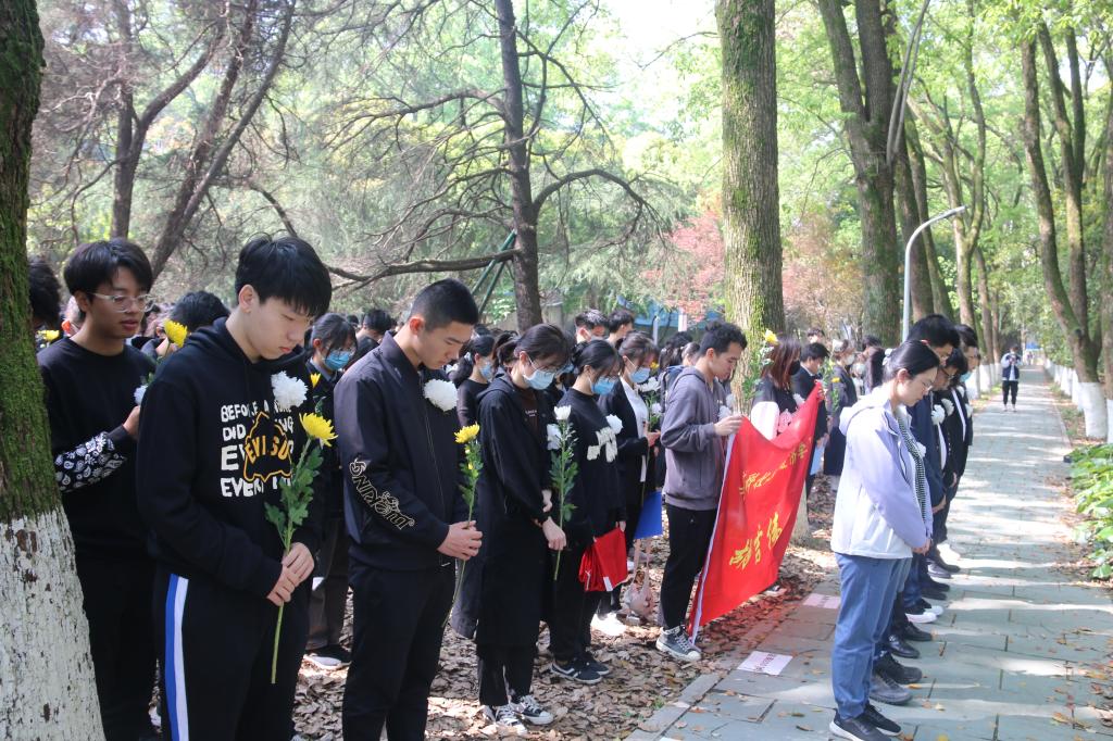 生命如花,责任无价,最美的花献给最可爱的人。学院领导、学生依次向胡吉伟塑像敬献花篮。全体预备党员在彭鹤翔老师的带领下,进行庄严的入党宣誓,表达对党的忠诚、对英雄的敬意。