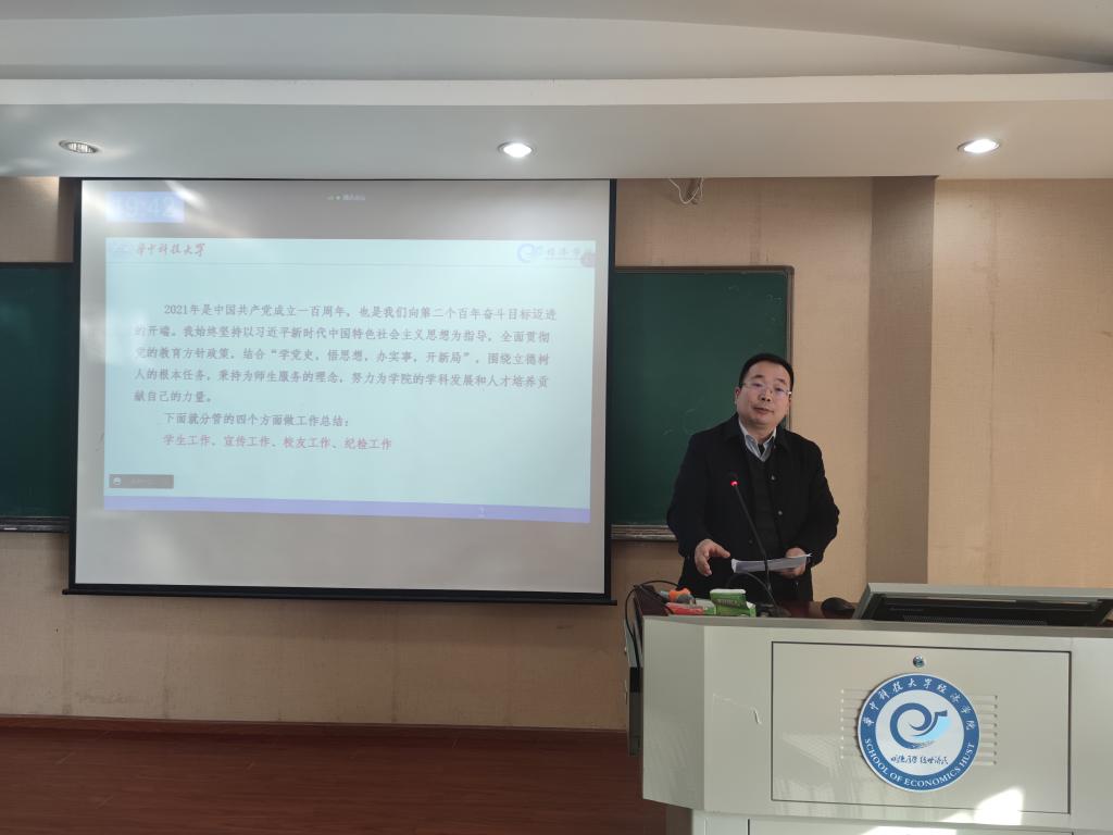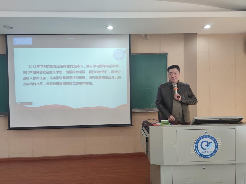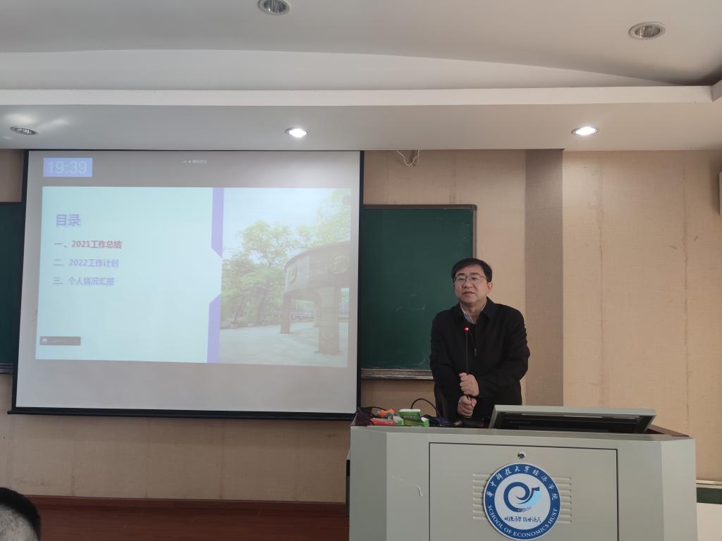 本网讯(通讯员王彬)2022年1月13日下午,我院在103教室召开2021年终总结大会。全体教职工参加大会,会议由学院党委书记戴则健主持。