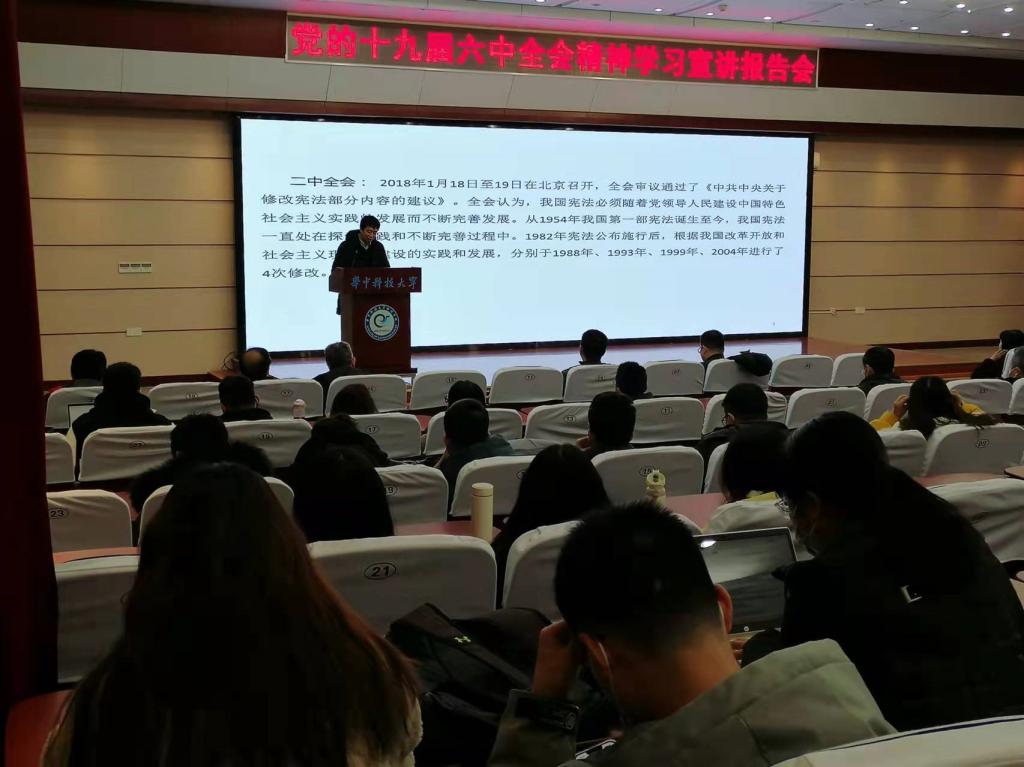 随后,陈廷柱老师围绕着深刻认识总结党的百年奋斗重大成就和历史经验的重大意义;深刻认识党的百年奋斗的初心使命和重大成就;深刻认识中国特色社会主义新时代的历史性成就和历史性变革;深刻认识党的百年奋斗的历史意义和历史经验;立足新时代,努力实现第二个百年奋斗目标五项内容展开宣讲,带领两院师生深入学习领会六中全会的精神实质。