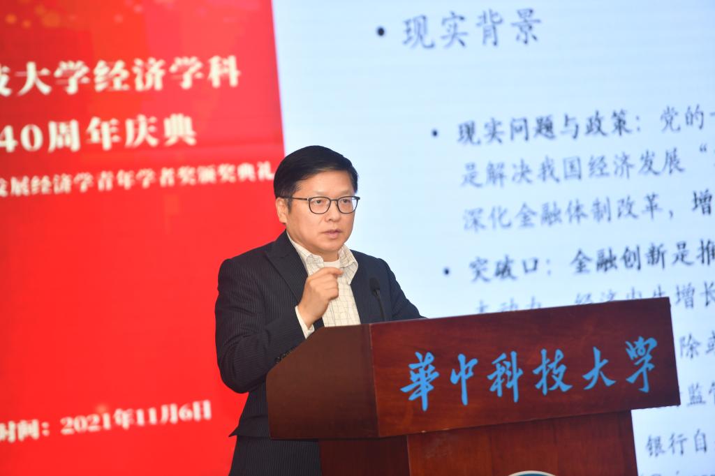 武汉大学经济与管理学院院长宋敏教授做了题为“金融科技与金融创新”的报告。宋敏教授首先介绍了主题的现实背景和学术背景。金融科技(FSB)的本质是通过云计算、大数据、区块链、人工智能等新兴技术手段推动金融创新,形成对金融服务,机构乃至整个金融市场产生重大影响的业务模式,技术应用以及流程和产品,随着金融科技信息技术的快速发展,传统金融机构的组织和运营面临着机遇和挑战。他的演讲从两个角度出发,对金融科技发展的影响展开了研究,一是聚焦金融科技与商业银行的行为和结果,二是关注金融科技对企业行为的影响,通过一系列严谨的实证分析最终发现:金融科技显著提高了商业银行的创新能力,机制分析表明:(1)金融科技的引入缓解了商业银行面临的信息难题,为提升金融创新提供了必要的技术支撑和渠道;(2)金融科技通过加剧商业银行的生存压力以及提升产业层面的竞争程度,进而促进了金融创新。较城市商业银行,大型国有银行和股份制银行利用金融科技提高创新能力的作用更加明显;商业银行选择研发团队规模大,创新能力强的金融科技公司更有助于创新水平的提升,金融科技在促进金融创新的同时没有放大银行风险。