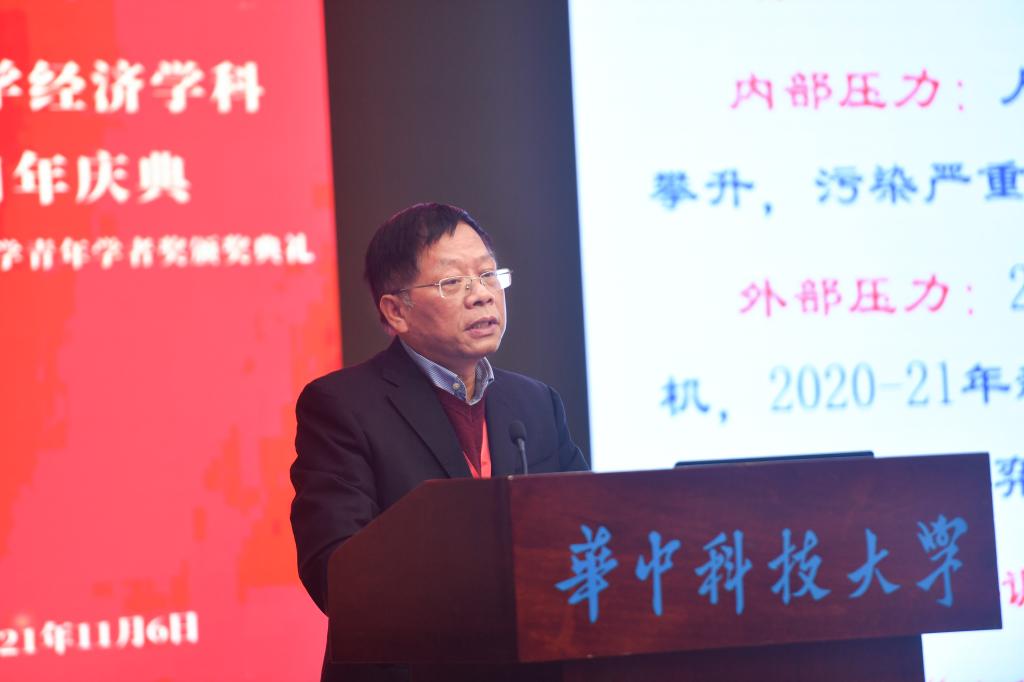 第二位进行主题报告的是重庆大学经济与工商管理学院教授姚树洁教授。姚教授的演讲主题为《后小康时代我国新发展格局》。首先,姚教授以时间为主线梳理了中国改革开放40年来由区域“非均衡”向“协调”发展的特征演变过程。具体来说,1978年—2008年,经济基础薄弱的中国为解决基本的需求问题采取伴随环境污染的速度优先发展政策,年均增速大于10%。姚教授进一步利用1979-2003年的经济数据说明东部、中部、西部的区域发展不均衡问题,东中西部地区依次形成三阶段的瀑布型经济发展形态,90%以上的出口都集中在东部地区,但是我国的绝对贫困发生率逐步降低,从1993年开始低于非洲绝对贫困发生率水平,2003年低于全球的平均水平。2012年为“协调”发展的时间分界点,但是2012年之后中国仍然面临着不小的内外部压力,人口红利缩小、人口老龄化日益严重、区域城乡收入差距进一步加大造成了中国发展的内部压力。此外,2008年金融危机、2010年欧洲债务危机、2020年的新冠肺炎危机、美国的单边主义、技术霸凌与地缘政治博弈给中国的发展造成了一定的外部压力。虽然全国及区域城市人均基尼系数不断下降,但基数有所提高所以增量仍然可观。地缘政治地位逐渐提高的中国在疫情的危机中也体现出强大的发展韧劲,在全球主要国家的出口贸易份额中提高1.6个百分点,这也促成了构建“双循环”的新发展格局。中国取得重大成功的秘诀是中国以保人民取得战役胜利,拥有强大工业制造体系和核心数据技术,党群联结上下一心。最后,姚教授将时间段聚焦到建国100周年(2035年-2049年),展望该阶段的后小康社会经济发展。在第一阶段(2021年-2025年)中国将稳中有进推进十四五规划,“六稳六保”的基础上人均GDP将超过全球平均水平达到1.2万-1.25万美元以上,迈入高收入经济体进入“高水平”国家,届时全球将只有16%人口人均收入高于中国。第二阶段(2025年-2030年)中国GDP总量超过美国成为全球第一大经济体,并在第三阶段(2030年-2049年)成为全球最发达国家之一。但与此同时在每一个阶段中国仍然会面临机遇与挑战,所以中国应该有计划、分步骤,稳扎稳打地利用新技术革命和深化改革推进民族伟大复兴事业。