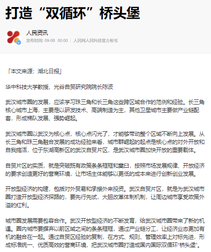 近日,我院陈波教授接受《第一财经》和《湖北日报》两家媒体采访,分别对横琴粤澳深度合作区建设以及武汉城市圈的发展发表观点。他认为“横琴粤澳深度合作区建设是实现大湾区经济一体化向上发展的突破性探索,对于我国打造开放新格局、释放更大的制度红利有着重要意义”。对于武汉城市圈的发展,他认为一方面要学习借鉴珠三角和长三角这些跨区域合作的范例和经验,通过包容合作,让周边城市享受政策外溢的红利。另一方面要充分利用自贸区发展优势,先行先试,在方式、规则、管理效率上对标先进,形成标准统一、优质高效的营商环境,力争将武汉城市圈打造成国内国际双循环“桥头堡”。