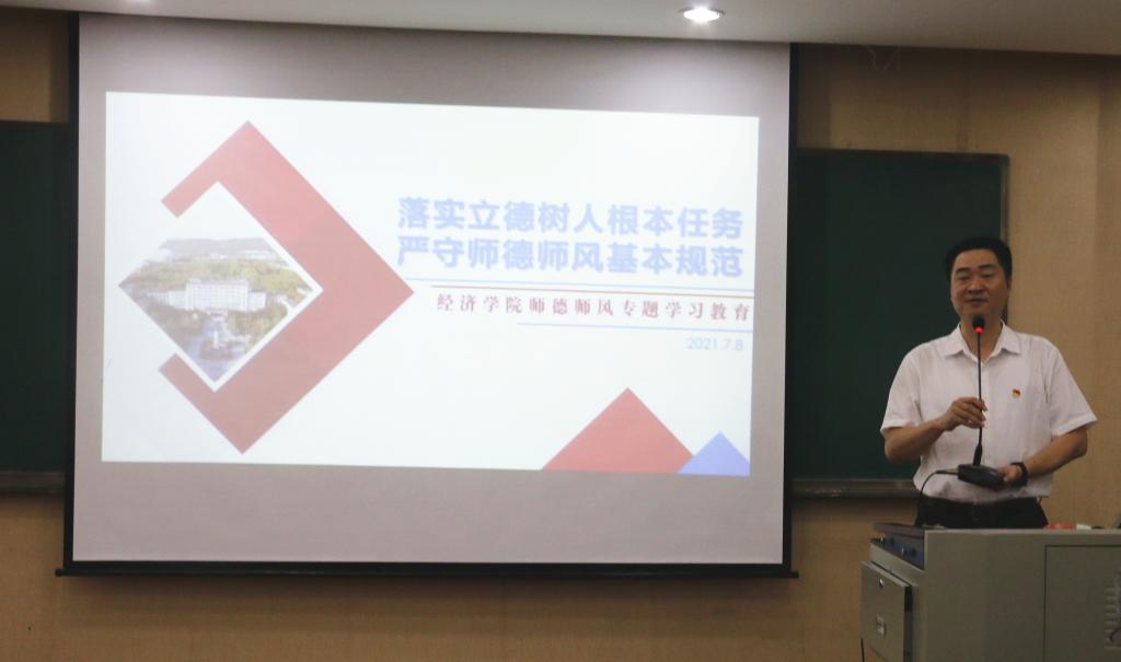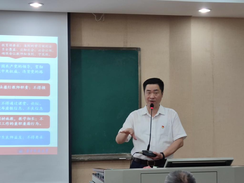 张建华院长结合学院人才培养和科学研究工作,深入阐述了师德师风建设这一内涵丰富、意义重大的命题。他指出,全体教师要把教育培养和自我修养结合起来,坚持传道授业、以德施教、学高为师,做学生成长成才的“引路人”,成为塑造学生品格、品行、品味的“大先生”,坚定理想信念,始终同党和人民站在一起,自觉做中国特色社会主义的坚定信仰者和忠实实践者。