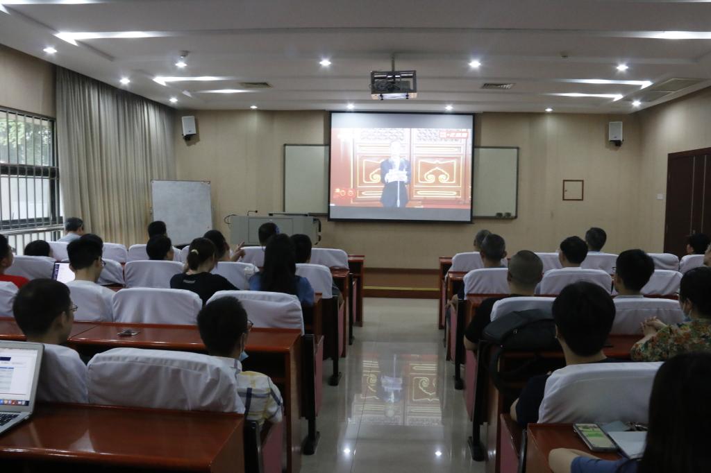·williamhill中文院长张建华、党委副书记崔金涛、副院长宋德勇、工会主席罗传建,师生代表,各党支部委员在学院106教室集中收看