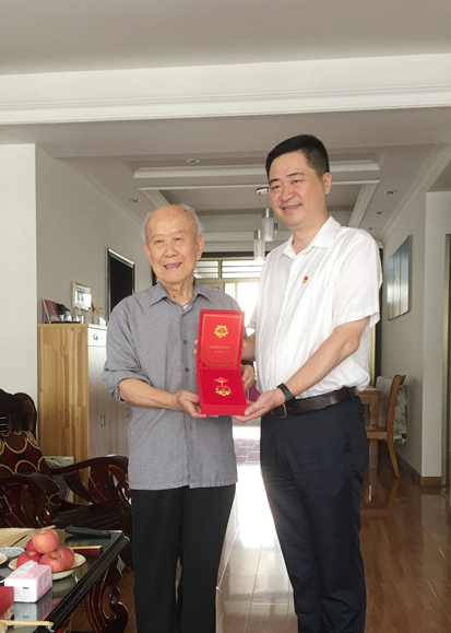 本网讯 (通讯员王彬)百年征程浩荡,百年初心如磐。6月21日,williamhill中文举行了“光荣在党50年”纪念章颁发仪式,同时进行了“七一”走访慰问活动。院党委书戴则健、教工党支部书记等一行分别到党龄达到50周年的老党员成伟林、黄芳泉、谭慧家中拜访,向他们颁发了“光荣在党50周年”纪念章,并送去了学院党委的关怀和慰问。