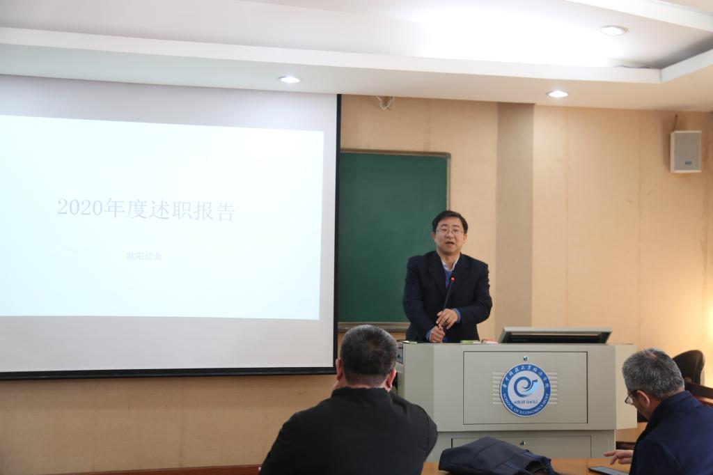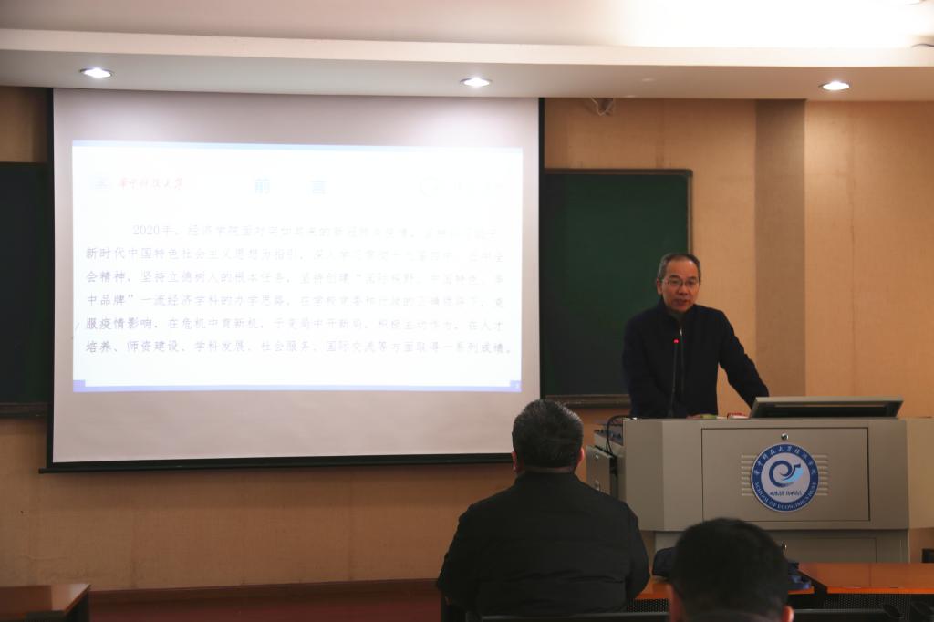 欧阳红兵副院长总结了2020年本科教学的工作。他强调,学院在特殊时期,第一时间紧跟教育部和学校部署,多举措并举,从教师培训、授课形式、队伍建设、工作保障等方面,确保各项教学工作稳步运行,开课率约95%,确保了非常时期相对正常的教学秩序。他对老师们在疫情期间为本科教学做出的努力表示感谢,同时,他从专业建设、质量建设、双一流拔尖人才培养基地申报等方面提出了2021年的工作重点。