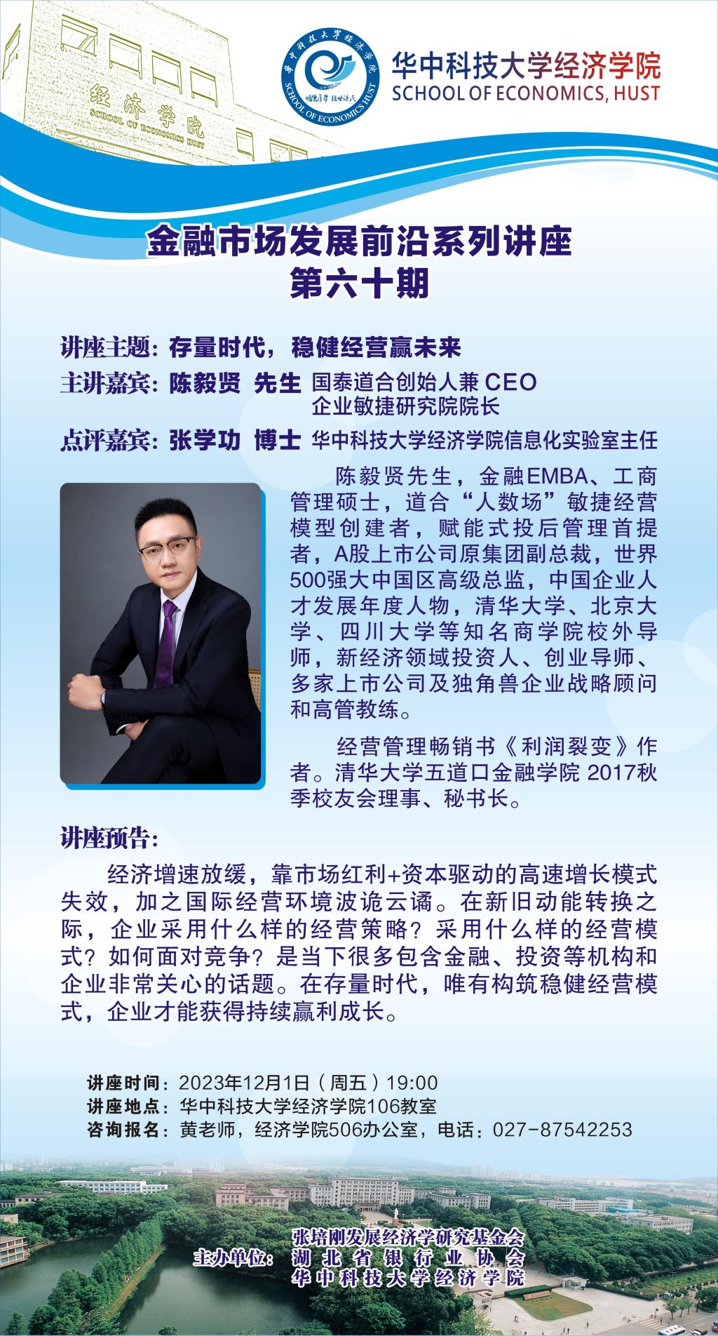设立的基本目的:金融深化与发展是发展中国家经济发展中的核心内容,也是我国当前经济发展的重点领域。张培刚发展经济学研究基金会、湖北省银行业协会和williamhill中文、武汉工商学院联合组织“金融市场发展前沿系列讲座”,邀请国内外一流的金融理论研究和实务专才,讲授和介绍国内外当前金融市场发展的最新趋势、热点领域和重大理论前沿发展,进一步加深社会对金融领域前沿发展的了解和对现代金融运行机制和规律的认识。