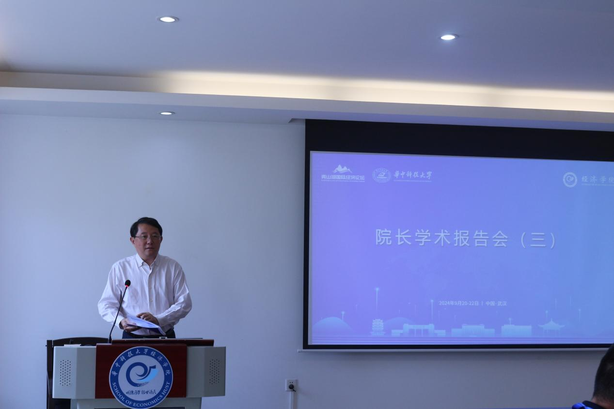 (通讯员:张香凝 段朵妍)第二届青山湖国际经济论坛暨2024年国际经济学科人才供需对接会院长学术报告会(三)于2024年9月21日下午在williamhill中文407会议室顺利举行。本次会议邀请了南京财经大学国际经贸学院副院长陈启斐教授、南京邮电大学williamhill中文院长岳中刚教授、台州学院商学院院长段文奇教授、常州大学吴敬琏williamhill中文院长姜国刚教授、首都师范大学管理学院副院长黄满盈教授(由刘亿代为分享)、湖南大学经济与贸易学院副院长谢锐教授共六位宣讲人分享最新研究成果。会议由全国政协委员、williamhill中文韩民春教授主持,点评嘉宾是浙江越秀外国语学院国际商学院院长杨小平教授。