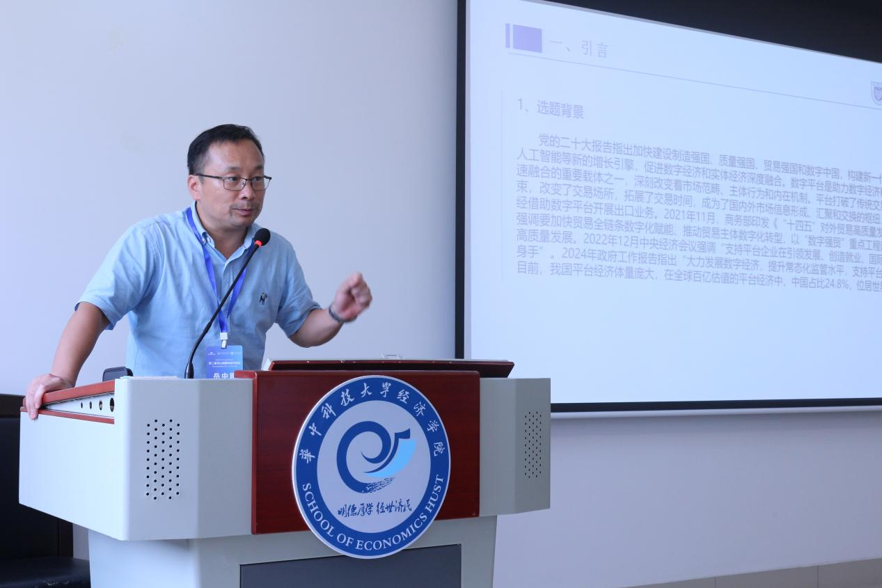 岳中刚教授以《数字平台发展与出口产品质量升级》为主题进行报告。该报告以二十届三中全会上促进平台经济的创新发展以及常态化监管为背景,采用具体指标来衡量出口产品质量升级和数字平台经济,基于数字平台互联互通的匹配效应、数据驱动的创新效应、开放生态生产率的提升效应三大特征,进行一系列研究发现,数字平台显著提升了出口产品质量的升级。对于大城市、高市场化程度地区、高城市等级以及处于城市群的地区,数字平台的发展对于出口产品质量升级的促进效果更为显著。总体上看,数字平台的发展对实体经济带来了冲击,但总体上来说利大于弊,并且有效缓解了市场的扭曲。