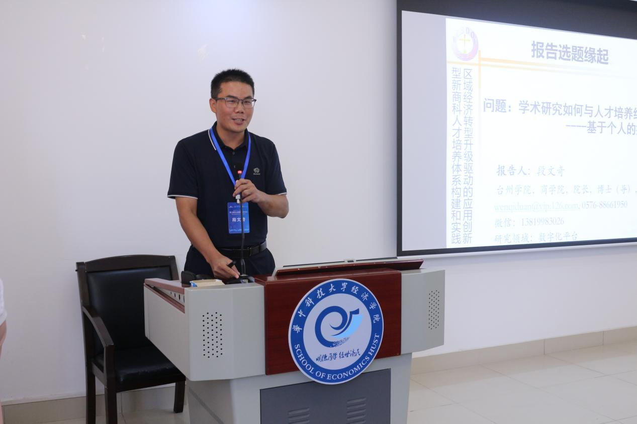 段文奇教授以《区域经济转型升级驱动的应用创新型新商科人才培养体系构建和实践》为主题进行报告。他分享了台州商学院人才培养生态系统的四大理念:多边用户互动的交易提供解决方案和设施、平台用户相互为对方创造价值、反馈机制是推动平台成长的根本动力、用户的交易行为为平台提供价值。通过案例、竞赛、论文、课题、教材推动理念落地,形成了协同的应用型创新人才培养模式,他还对实施过程的具体方案、遇到的困难以及困难的解决方案进行了介绍。他还对跳出高校、找到应用型创新人才培养体系,并构建应用型高校商学院的校际共生发展模式作了详尽的叙述。