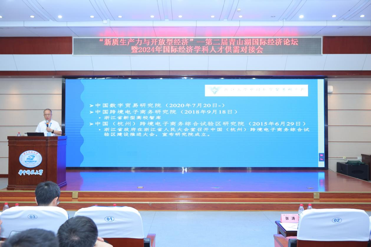 青山湖国际经济论坛起源于杭州青山湖畔,第一届在浙江省嘉兴市圆满举办。第二届青山湖国际经济论坛由williamhill中文承办。本次论坛以“新质生产力和开放型经济”为主题,探索新质生产力如何促进高水平对外开放、以及如何在开放型经济下发展新质生产力。本次论坛汇集国内在国际经济学领域的最新研究成果,各位专家学者齐聚一堂,为我国进一步扩大高水平对外开放助力。本次论坛包含主旨演讲、发起人学术报告会、院长学术报告会、专家论坛、博士生论坛、数字经济与贸易标准研发论坛、全国大学生数字贸易综合能力大赛宣讲会、国际经济学科人才供需对接会等8个层次,14个分会场。会议邀请了国际贸易学、世界经济学,以及国际商务领域的知名专家学者、期刊编辑参会。会议规模超过200人,参会人员涉及140余所高校及相关单位,涵盖30多所985和211等层次的高校院长以及专家。