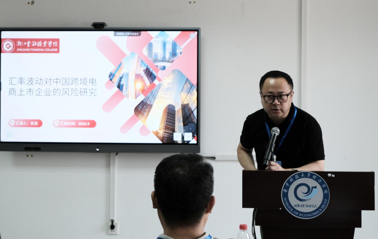 史浩副教授以《汇率波动对中国跨境电商上市企业的风险研究——基于Copula CoVaR 模型的分析》为主题进行报告。该研究以跨境电商成为推动国际贸易的重要力量为背景,采用AdrianandBrunnermeier(2016)提出的条件风险测度框架CoVaR(条件风险值,Conditional Value at Risk) ,来度量在汇率(比如美元/人民币)波动的极端条件下,对中国跨境电商企业所带来的风险影响大小。研究的边际贡献在于提供了汇率与企业风险的一种非线性度量方式,是对其他线性度量的有益补充,为研究非金融企业汇率风险贡献了新的文献内容,尤其是在跨境电商企业研究中采用了较少使用的CoVaR框架和Copula估计方法。该研究虽聚焦于跨境电商领域,但可以成为参考供拓展研究范围领域。