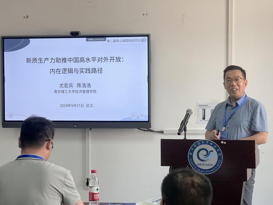 尤宏兵教授以《新质生产力助推中国高水平对外开放:内在逻辑与实践路径》为主题进行报告。他的研究围绕新质生产力的提出与内涵、新质生产力与高水平对外开放、新质生产力赋能高水平对外开放的困境、新质生产力赋能高水平对外开放的实践路径展开,从供给侧与需求侧、市场与政府、内因与外因、国际与国内、辩证关系与内在逻辑方面进行深刻分析。同时,研究还例举了未来产业、传统产业、数字经济、绿色发展等战略性新兴产业作为新质生产力赋能高水平对外开放的领域,为实现新质生产力赋能高水平对外开放提供了参考意见。