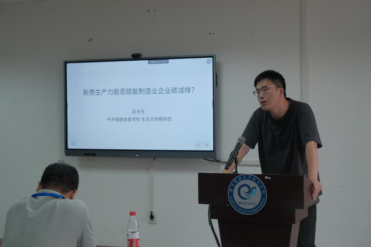 彭冬冬副教授以《新质生产力能否赋能制造业企业碳减排》为主题进行报告。该研究基于文献、理论分析与研究假设,通过多方面机制检验进行验证。他认为该研究对于检验新质生产力发展对企业碳证实了新质生产力与绿色低碳可以实现协同共赢、揭示新质生产力发文基于碳排放强度的计算公式、提出并验证了新质生产力通过节能效应减少碳排放、探究新质生产力发展推动企业减碳政策效果的互动具有重大意义。他建议因地制宜发展新质生产力、进一步推动市场化改革、实施差异化的减碳政策,具有明显的政策启示。