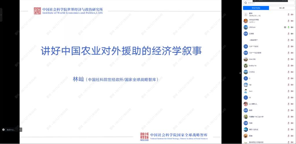 本网讯(通讯员:晏琦)1月9日下午,发展经济学研讨会2024年第1期(总第100期)在腾讯会议举行,来自中国社会科学院世界经济与政治研究所、国家全球战略智库、国际大宗商品研究室助理研究员林屾与学院师生分享了题为《讲好中国农业对外援助的经济学叙事》的学术报告,学院教师代表王班班、郑冯忆,以及众多硕士与博士研究生参与本次会议。本次研讨会由王班班主持。