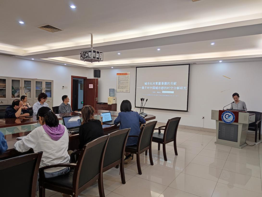 随后,廖晓洁硕士生汇报了题为《城市化对雾霾暴露的贡献——基于对中国城市群的时空分解研究》的工作论文。